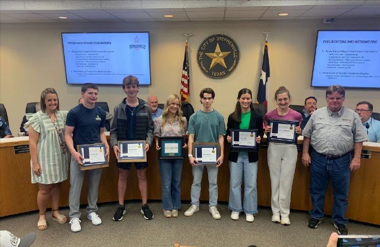 At the May 6 city council meeting, the 2024-25 Mayor's Youth Council members were recognized. The six members spent the year learning about their community, municipal and state level government, and how to grow as a leader. Congratulations to Kenson Fain, Hudson Musick, Kenley Pack, Jansen Monk, Ella Shaw and Kate Fambrough on your involvement. If you want to be involved in the 2025-2026 Mayor's Youth Council, visit our website for more information or email City Secretary's office at citysecretary@stephenvilletx.gov. Applications open July 1. Photo Credit: City of Stephenville