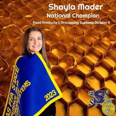 Shayla Mader was named National Champion with her agricultural research project in the Food Products & Processing Systems Division Five. Photo Credit: Stephenville FFA